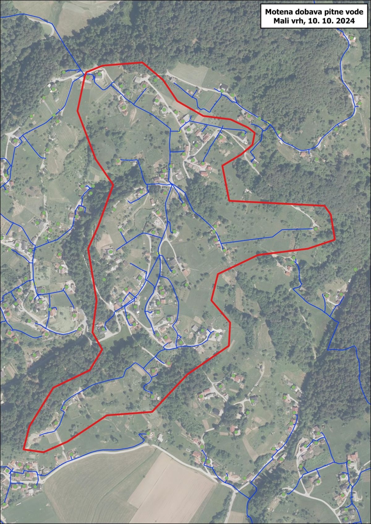 Komunalno podjetje Velenje obvešča uporabnike na območju naselja Mali Vrh v občini Šmartno ob Paki, da bo v četrtek, 10. 10. 2024, med 8. in 13. uro, zaradi nujnih vzdrževalnih del na javnem vodovodu prekinjena oz. motena dobava pitne vode. Sliko območja motenj dobave pitne vode si uporabniki lahko pogledajo na spletnih straneh in FB profilu podjetja.