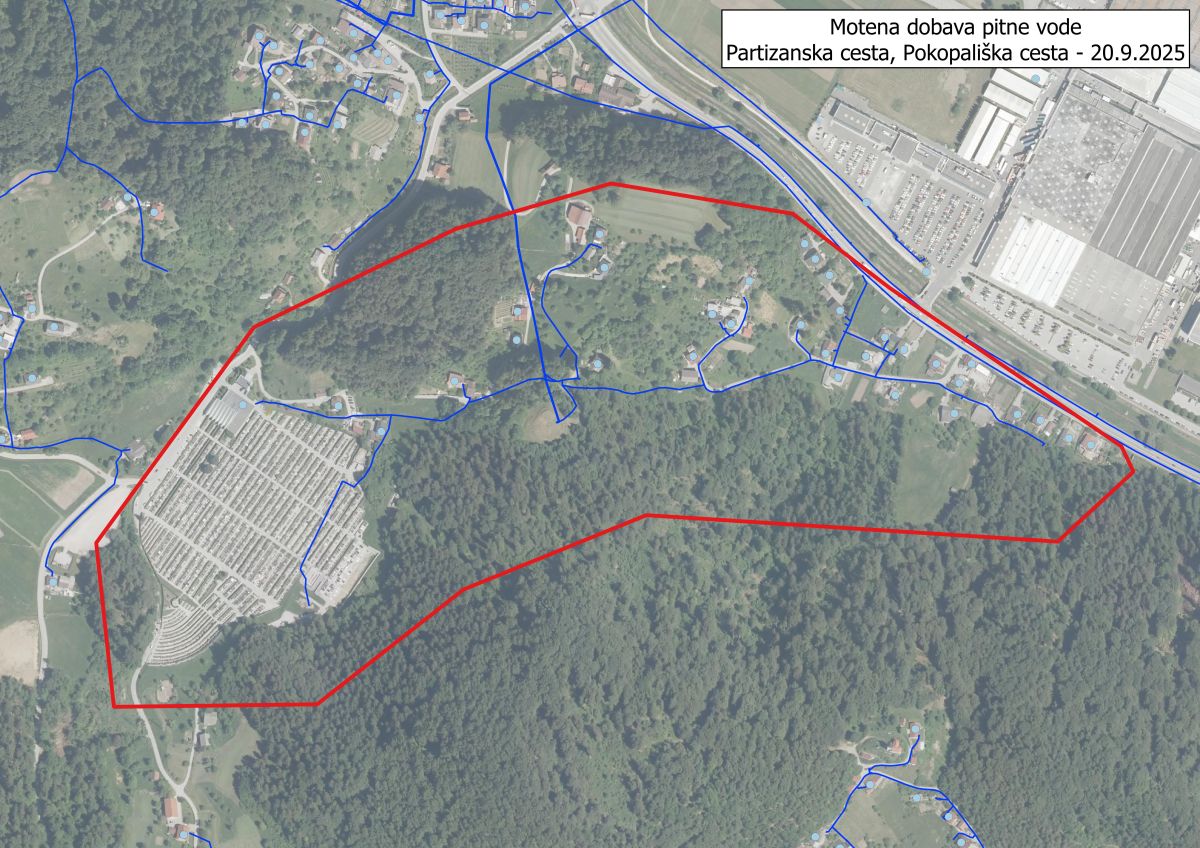 Komunalno podjetje Velenje obvešča uporabnike na območju Partizanske in Pokopališke ceste v Velenju, da bo v soboto, 20. 9. 2025, med 8. in 17. uro, prekinjena oziroma motena dobava pitne vode zaradi nujnih vzdrževalnih del na javnem vodovodu.
