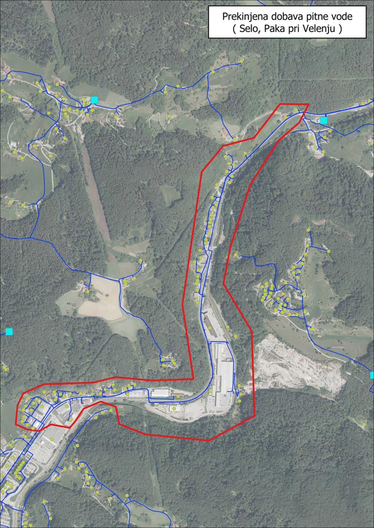 Komunalno podjetje Velenje obvešča vse uporabnike na območju zaselkov Selo in Paka pri Velenju, da bo v nedeljo, 8. 9. 2024, med 8. in 15. uro, zaradi nujnih vzdrževalnih del na javnem vodovodu prekinjena oziroma motena dobava pitne vode. Vse odjemalce prosijo za strpnost in se zahvaljujejo se za razumevanje.