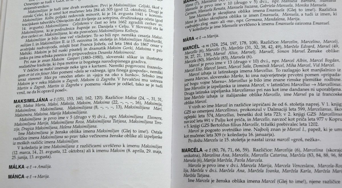 Kot pravijo na statističnem uradu, so sodobna imena čedalje krajša, vsega skupaj pa imamo v Sloveniji 64.000 različnih imen, najpogostejša sta Marija in Franc. Sedem od 10 imen je unikatnih, šest imen pa je tako pogostih, da je z njimi poimenovanih po več kot 15.000 prebivalcev.