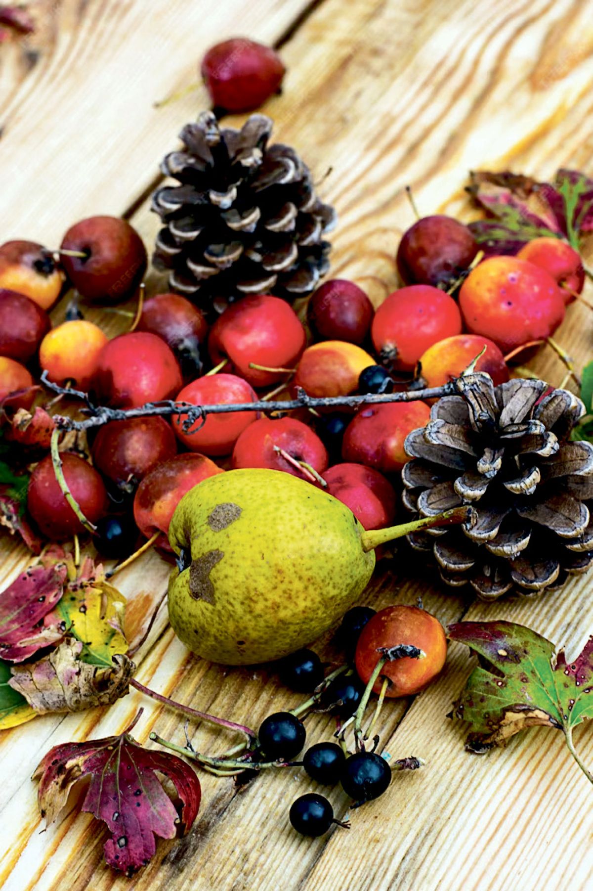 Nikakor pa ne smemo pozabiti tudi na jesensko sadje – grozdje, hruške, orehi, lešniki, kostanj, kaki in jabolka.