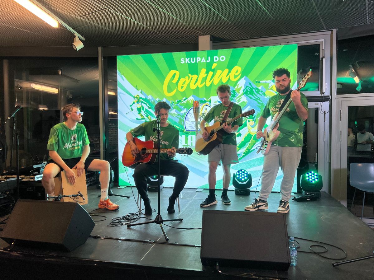 Večer je pripadel mladim fantom iz skupine Cherry Flavoured, ki so najprej odtekli celo uro na tekalni stezi, nato pa v Planici pripravili pravi mini koncert in še dodatno dvignili razpoloženje.