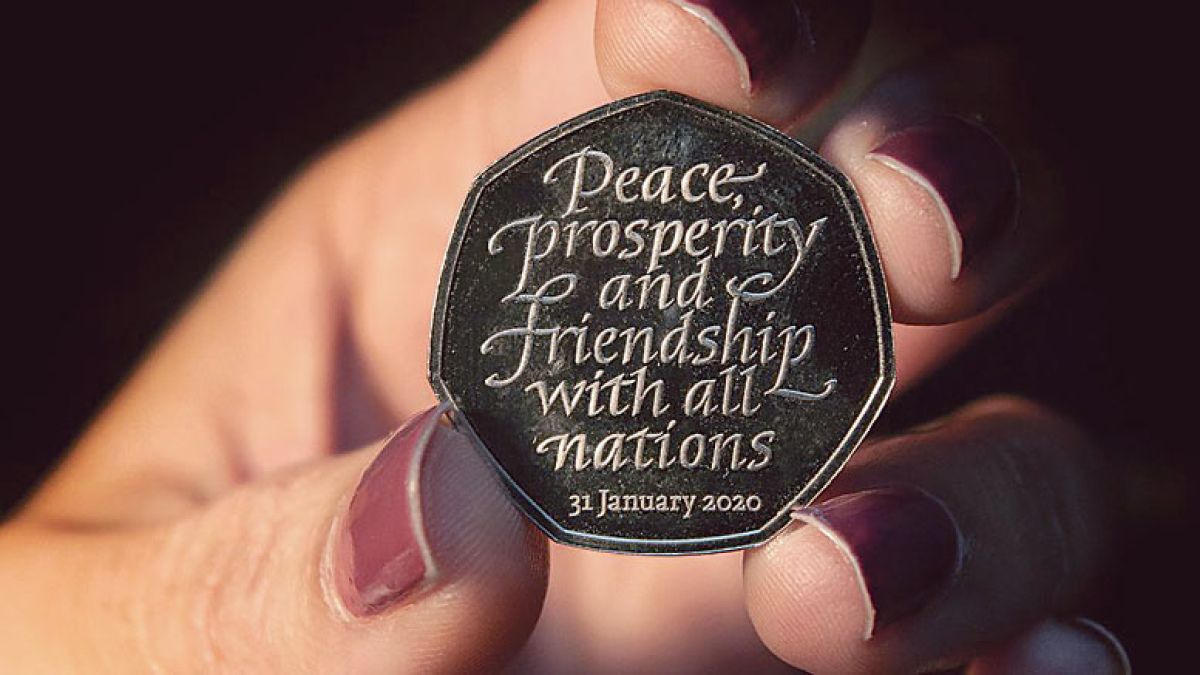 Vlada v Londonu je nameravala spominski kovanec izdati že 31. oktobra lani, ko je bil predviden brexit. A ker je bil datum izstopa preložen na 31. januar, so morali spominske kovance pretopiti in narediti nove. Prejšnji teden je naposled v obtok prišlo okoli tri milijone kovancev za 50 penijev, pozneje letos pa se jim bo pridružilo še sedem milijonov tovrstnih kovancev. Na kovancu (v angleščini) piše: »Mir, blaginja in prijateljstvo z vsemi narodi. 31. januar 2020«. Zagovorniki obstanka Združenega kraljestva v Evropski uniji so napovedali, da v trgovini ali kje drugje kovanca ne bodo sprejeli, tudi če bi jim ga hoteli dati. Ker so nekateri drugi povsem drugačnega mnenja, bo kraljeva kovnica kovance dala tudi v prodajo, največji numizmatiki pa bodo za 50 penijev (približno 60 centov) odšteli med 10 in 945 britanskih funtov (med 12 in 1122 evrov).