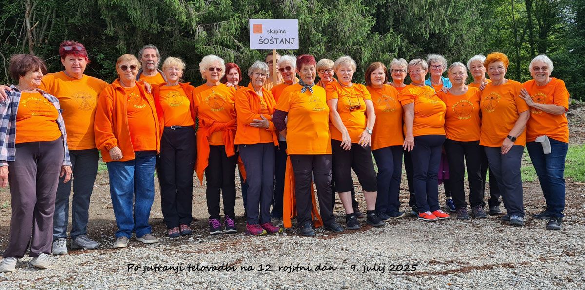 Šoštanj, 9. julija – Člani društva Šola zdravja Skupina Šoštanj smo obeležili 12 let neprekinjenega delovanja. Skupino je deset let uspešno vodila Ljubica Donko, zadnji dve leti pa je vodenje prevzel Bojan Uršnik. Vsak delovni dan od 7.30 pol ure izvajamo jutranjo telovadbo po metodi 1.000 gibov, ki smo jo v času neposredno po koroni obogatili z elementi joge, tako da vaja traja eno šolsko uro.