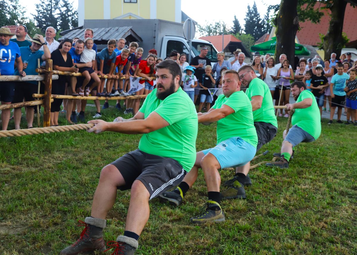 Med prikazom so zapeli pevci moškega pevskega zbora iz Šmihela, dogajanje so polepšale tudi sestrice Vodovnik, domačinke s kmetije Spodnji Goltnik nad Šmihelom. Ponudba aktiva kmečkih žena je bila pristna domača hrana in pijača; žganci in zelje, masovnik, domači krompir, jagnjetina ter za posladek palačinke, potice, štrudlji in vse vrste domačih piškotov. Ob prvi plohi so se močna dekleta in krepki fantje pomerili v vleki štrika.