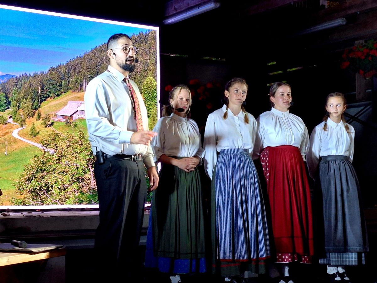Ob zanimivem klepetu Ane Kočnar, Mete Preprotnik, Doroteje Slapnik, Vite Prodnik in med njimi z insceniranimi dokumentarnimi vložki male zgodovine Solčavskega Dejana Ikovica Bušija je zgodbo 70 let na Solčavskem vsebinsko in pevsko povezal vsestranski kulturnik, glasbenik, pevec ter kronist-scenarist kulturnega dela prazničnega večera Franci Podbrežnik Solčavski.