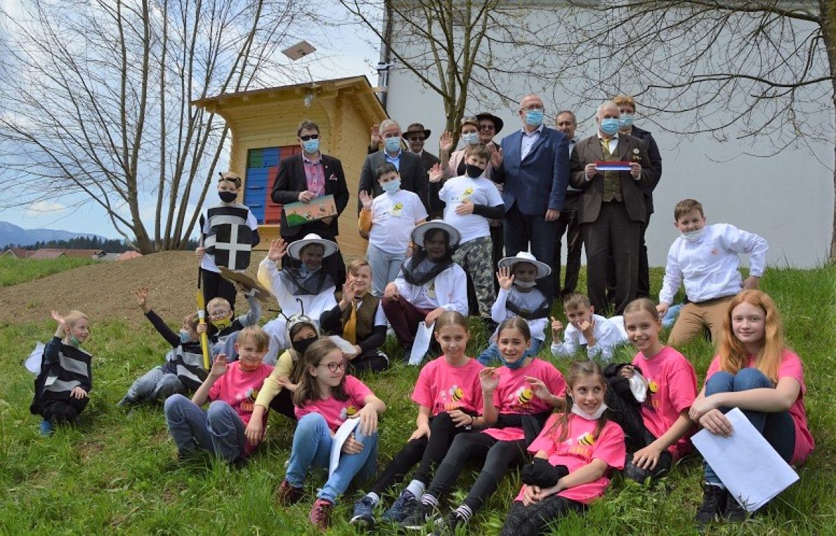 Nazarje – Podjetje BSH Hišni aparati Nazarje in Čebelarska zveza Slovenije sta včeraj v okviru projekta #začebele pri OŠ Nazarje postavili prvi učni čebelnjak.