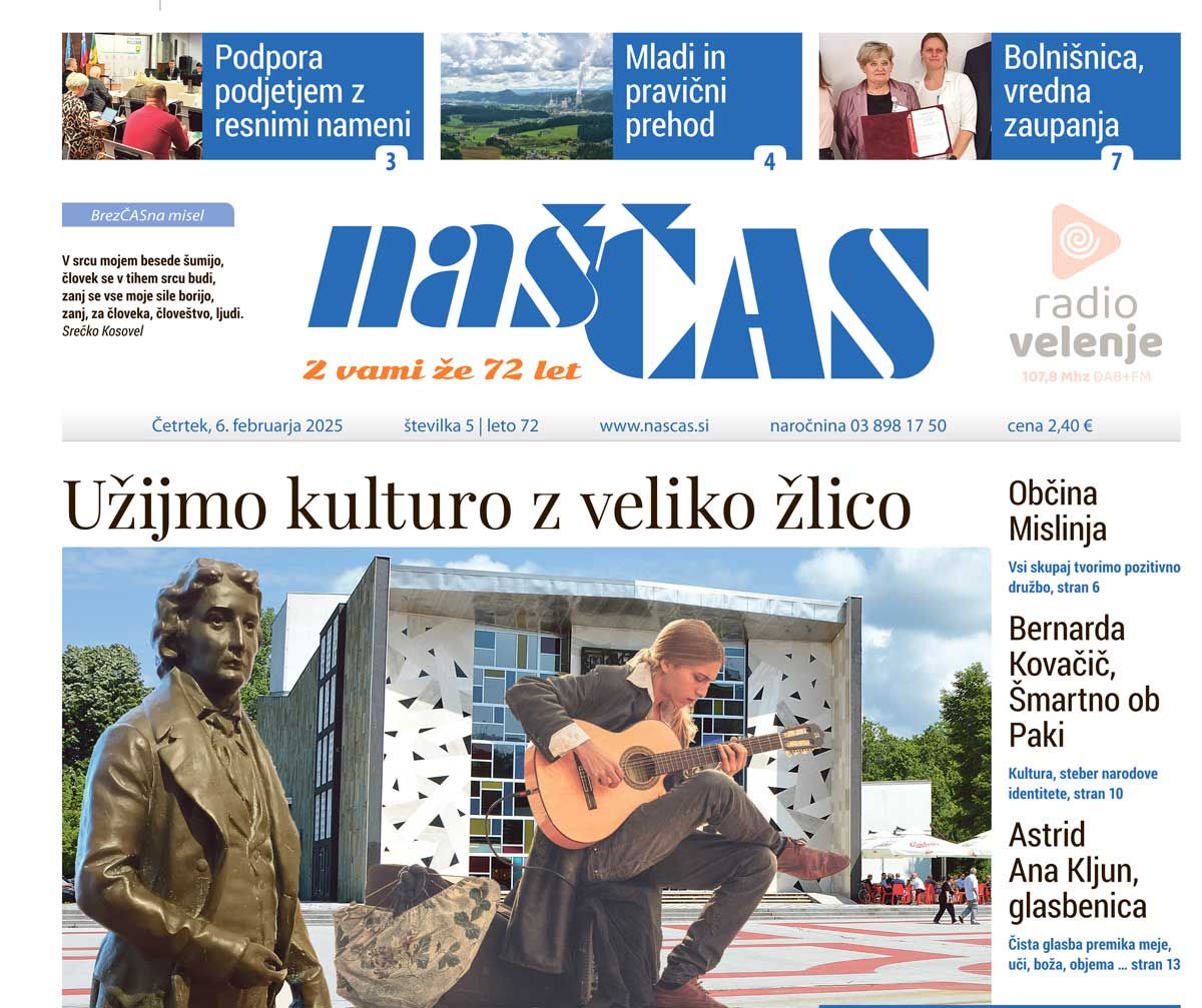 Naš čas, če vam ga poštar ni dostavil v nabiralnik, lahko kupite v vseh trafikah, dobite pa ga tudi pri nas v uredništvu (03 898 17 50). V tokratni številki izpostavljamo zanimive in aktualne vsebine:
