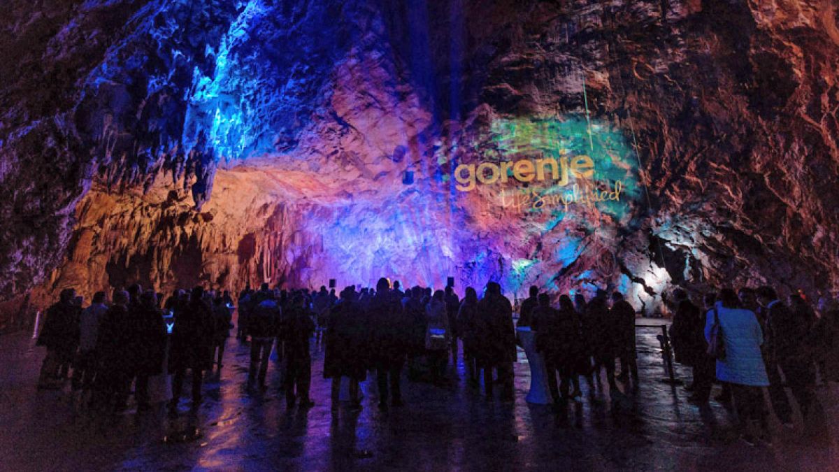 Gorenje je pripravilo predstavitev nove generacije pomivalnih strojev SmartFlex v Postojnski jami, ki je za to priložnost zažarela v mavričnih barvah.