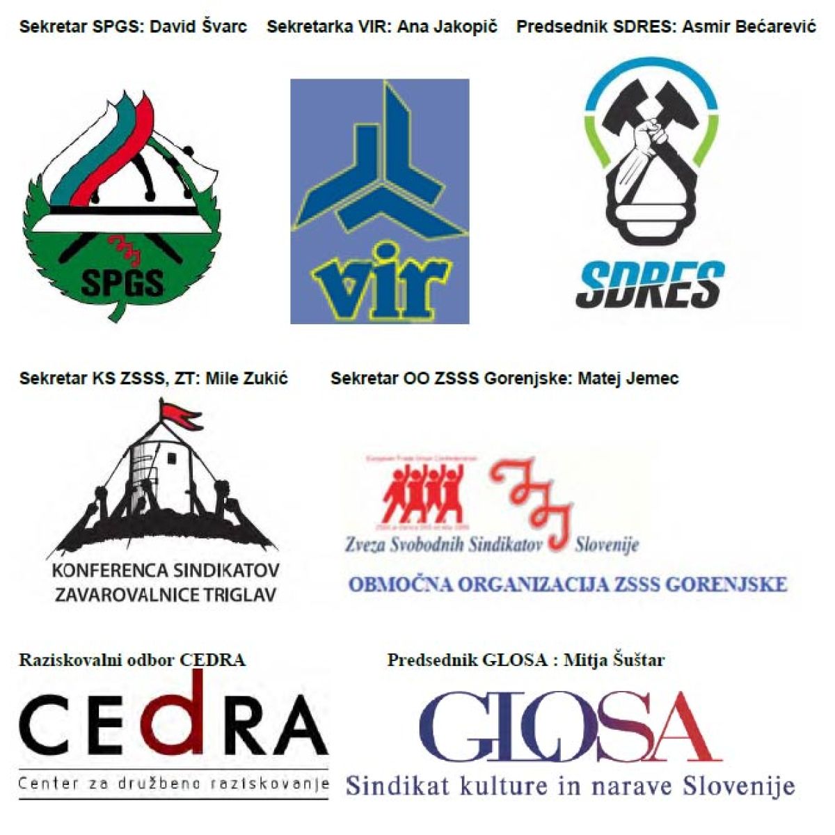 Sindikat poklicnega gasilstva Slovenije (SPGS), Sindikat delavcev v vzgojni, izobraževalni in raziskovalni dejavnosti Slovenije (VIR), Sindikat delavcev rudarstva in energetike Slovenije (SDRES), Konferenca sindikatov Zveze svobodnih sindikatov Slovenije, Zavarovalnice Triglav (KS ZSSS, ZT), Območna organizacija Zveze svobodnih sindikatov Slovenije Gorenjska, Raziskovalni odbor Centra za družbeno raziskovanje (CEDRA) in Sindikat kulture in narave Slovenije (GLOSA) zaradi izrednega stanja v državi od vlade RS zahtevajo: