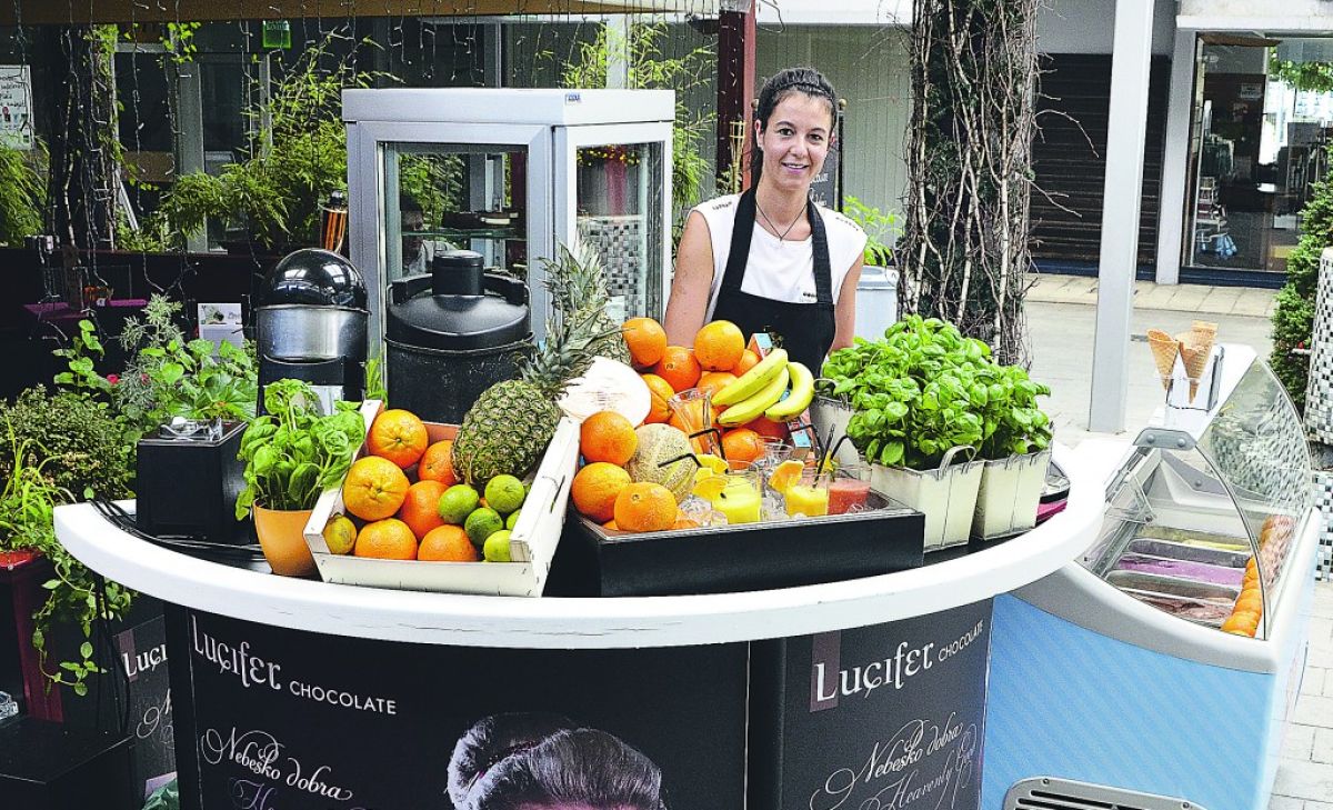 O tej dopolnitvi je veliko razmišljal, potem pa spoznal mlado Velenjčanko Saro, sicer geologinjo, ki je zadnja leta preživela na Novi Zelandiji in se tam naučila priprave različnih napitkov, osvežujočih jedi in sladoledov iz svežih sestavin sadja in zelenjave. To jo je tako navdušilo, da želi to delati tudi tukaj v Velenju. In že dela! Srečali jo boste v novem sladolednem vrtu pri kavarni Lucifer.