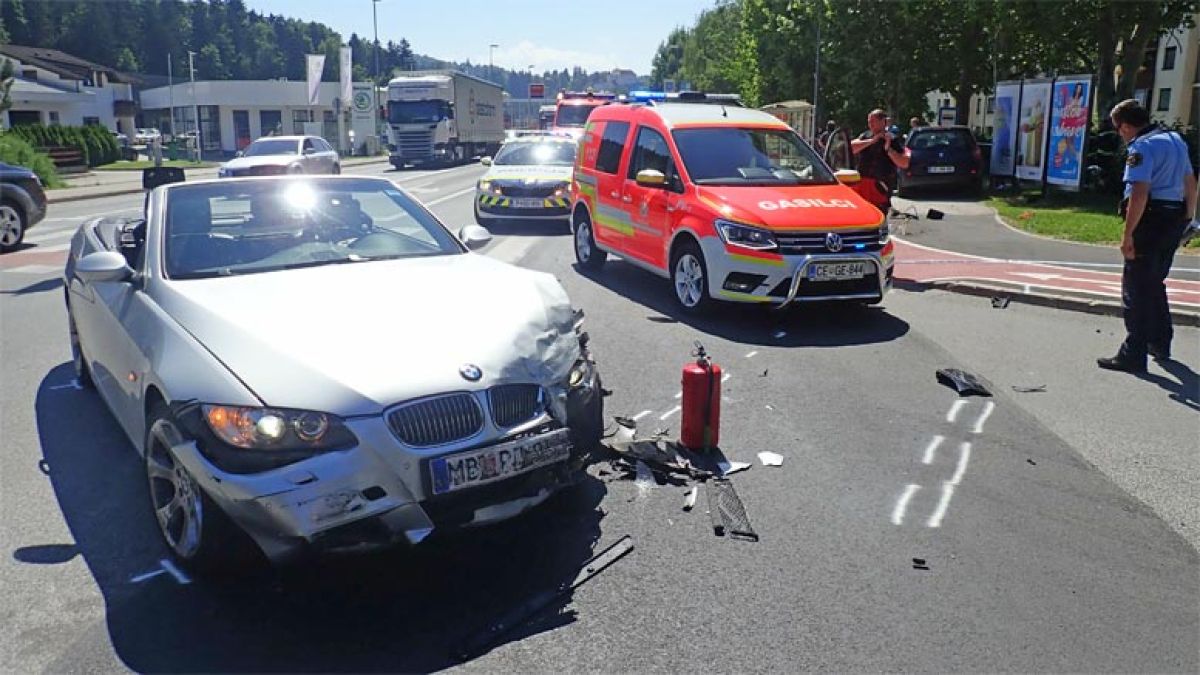 37-letni voznik osebnega vozila, ki je vozil iz smeri Slovenj Gradca je čelno trčil v vozilo voznika, ki mu je izsilil prednost. Vozilo 61-letnega voznika se je odbilo v dva pešca, ki sta stala na pločniku. Hudo poškodovana pešca, oba sta stara 18-let so odpeljali v Splošno bolnišnico Celje.