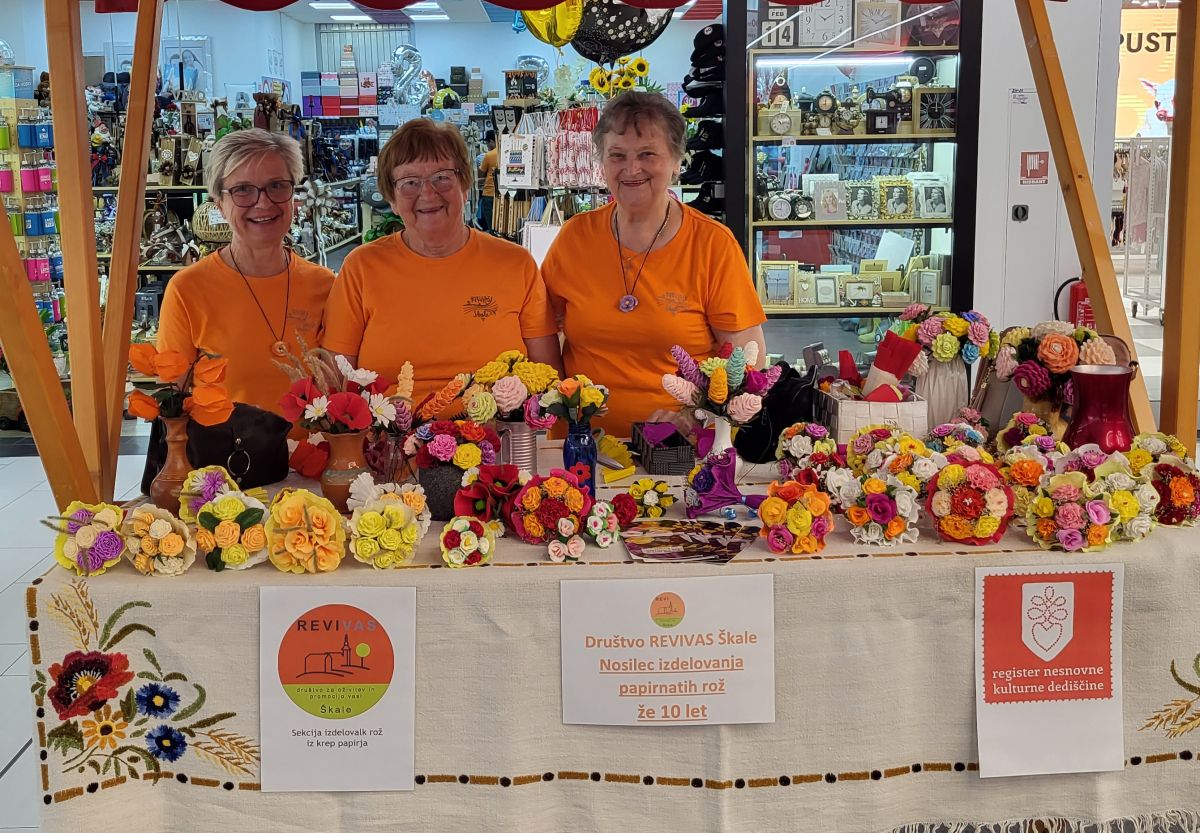 Revivas – društvo za oživitev in promocijo vasi Škale – Sekcija izdelovalk rož iz krep papirja je že deset let vpisana v register nesnovne dediščine
