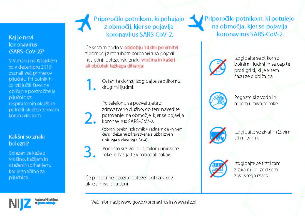 spletišče državne uprave – osrednja spletna stan o koronavirusu, kjer se poleg priporočil NIJZ in drugih resorjev dnevno objavljene tudi informacije o vladnih odločitvah na to temo