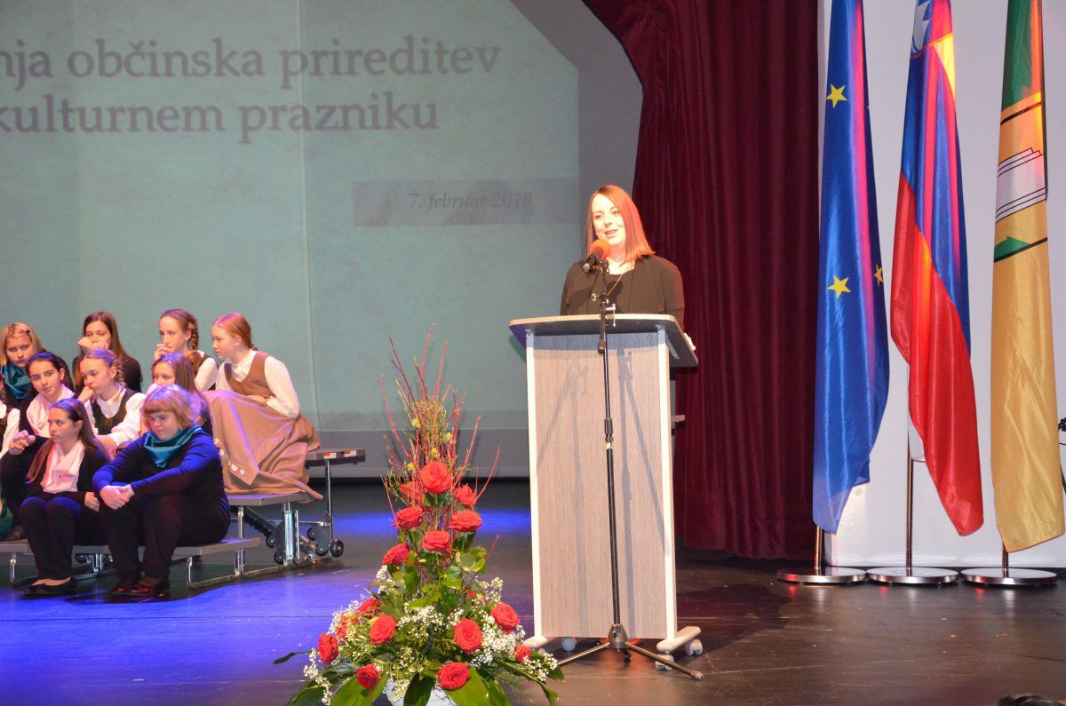Slavnostna govornica je bila Barbara Pokorny, direktorica Festivala Velenje, ki letos praznuje 10-letnico delovanja. V tem času so ustvarili več kot 10 tisoč dogodkov in prireditev, ki jih je obiskalo 2 milijona ljudi. Med drugim je poudarila: »Veseli me, da je vedno več ljudi, ki posvečajo svoj čas kulturi, ki jo tudi iskreno doživljajo. To se pozna tudi pri obisku naših kulturnih prireditev in odzivu nanje, ki je zavidanja vreden. V Velenju je odlično poskrbljeno za kulturne ustvarjalce in tudi za prejemnike kulturnih dobrin. V našem mestu je kultura pisana z veliko začetnico.«