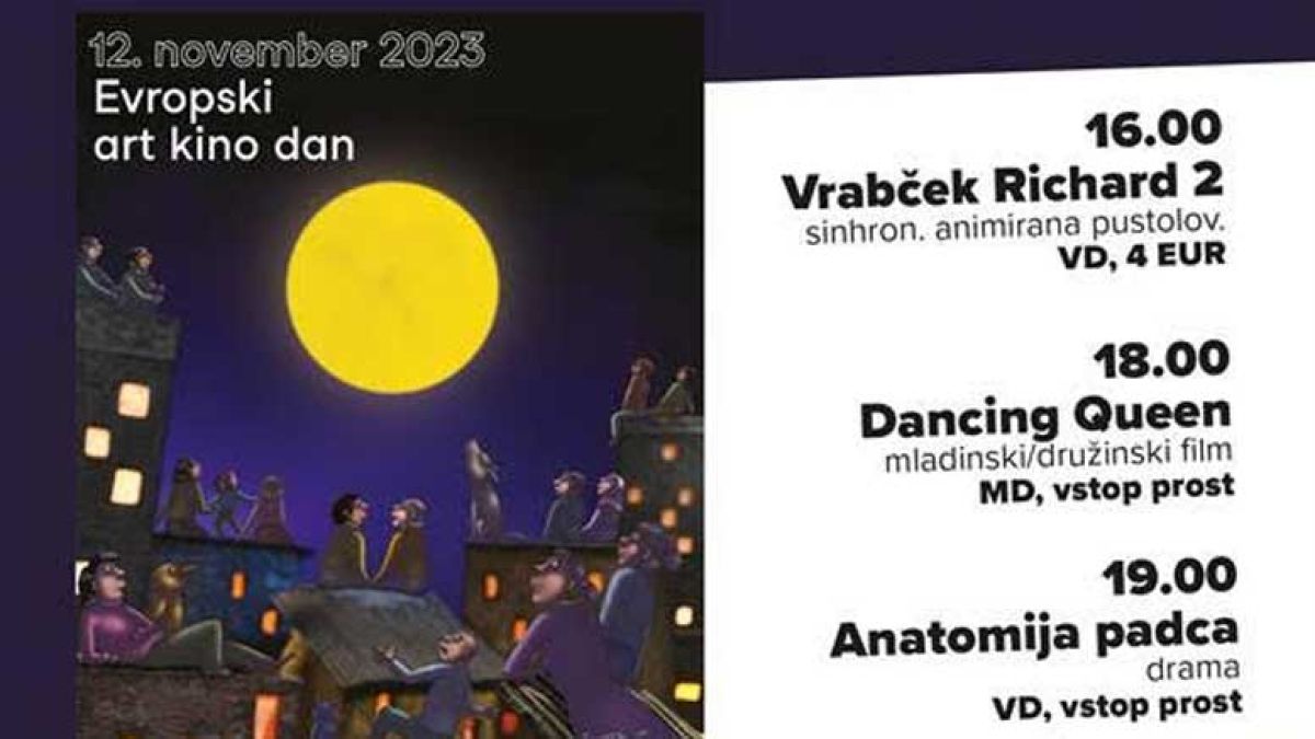 Na ta dan bodo predvajali program s posebno ponudbo za otroke (Vrabček Richard 2), mlade (Dancing Queen) in odrasle (Anatomija padca) – slednja dva bosta na ogled brezplačno. Vzemite si čas zase in kakovosten filmski program ter praznujte z nami!