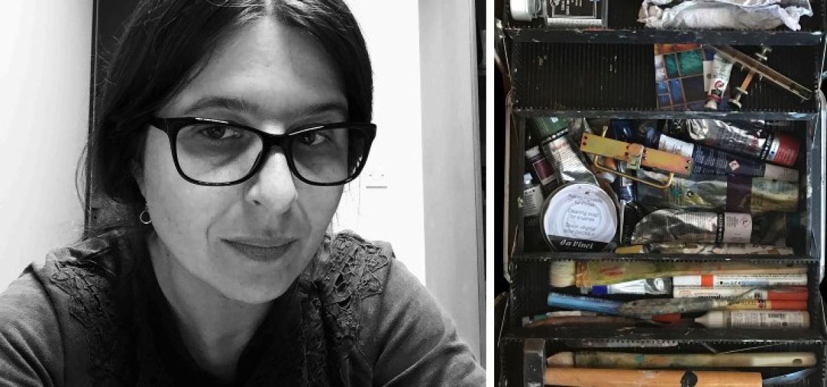 Karantenski kovček ustvarjalnosti naše znane slikarke Nataše Tajnik Stupar prinaša obiskovalcu, kot pravi sama, “potovanje po različnih plasteh likovne kompozicije.”