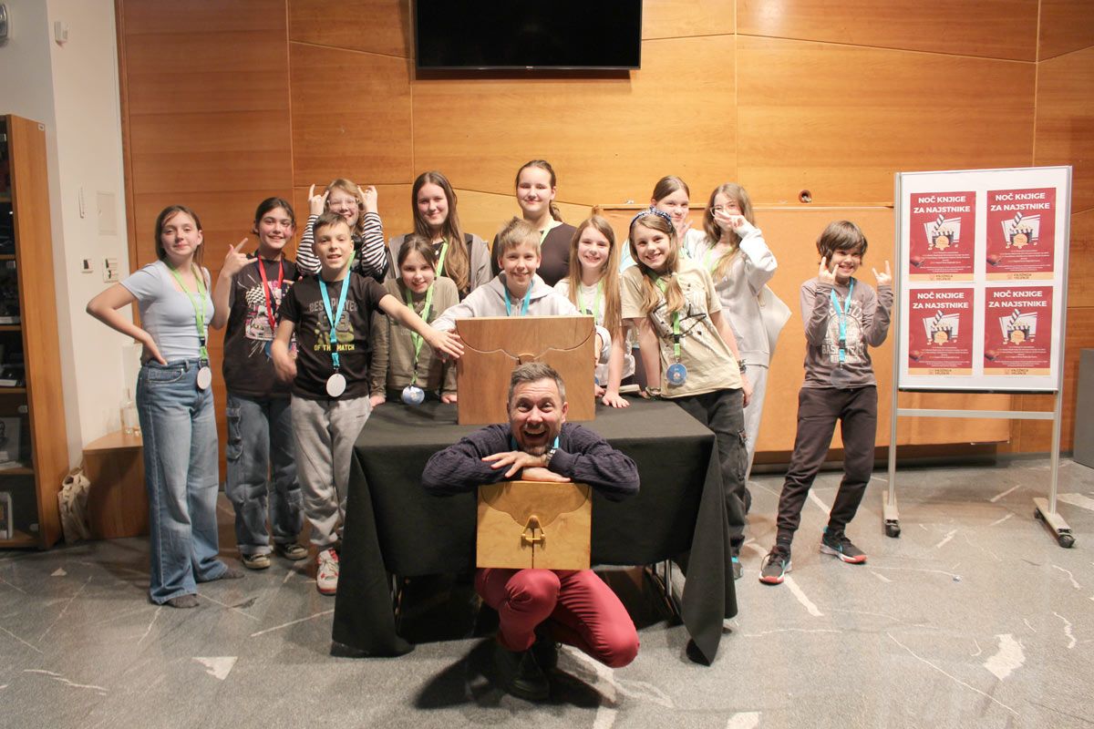 Velenje, 11. aprila – V Knjižnici Velenje se je odvijala že peta Noč knjige za najstnike. Tokrat se je je udeležilo 13 osnovnošolcev, dva z OŠ Gorica in 11 z OŠ Šalek, pod mentorstvom prof. Sanje Jazbinšek Sever. Ti učenci se tudi skozi leto udeležujejo bralnega krožka za najstnike Cool knjiga in srečanj za ljubitelje filma Filmoljubci. Tako je Noč knjige za najstnike »nagrada« za celoletno sodelovanje.