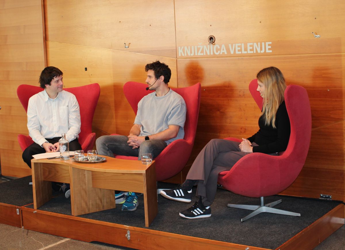 Velenje, 5. decembra – V okviru projekta Športajmo in berimo (nacionalni medresorski program za spodbujanje branja med mladimi športniki), ki ga že četrto leto izvajajo v sodelovanju z Olimpijskim komitejem Slovenije in v letošnjem letu z Goriško knjižnico Franceta Bevka kot koordinatorico ter dijaki športnih oddelkov Gimnazije Velenje, so v Knjižnici Velenje gostili izjemna športnika Ano Drev in Matevža Skoka, s katerima se je o pomenu branja ob športu pogovarjal odlični športni novinar Tomaž Hudomalj.