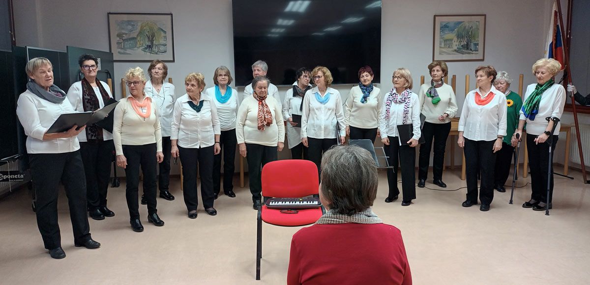 Članice ŽPZ DU Velenje pod vodstvom Manje Gošnik Vovk so zapele nekaj zimzelenih pesmi, ki so poslušalce že popeljale v pomlad. Nenazadnje se je vse dogajalo na Valentinovo. Program je z občutkom in prijetnimi mislimi povezovala Irena Zalar. Med drugim je podelila tudi povedno misel Andreja Rozmana Roze: »Pogovarjanje je bolj potrebno kot obleka ...«