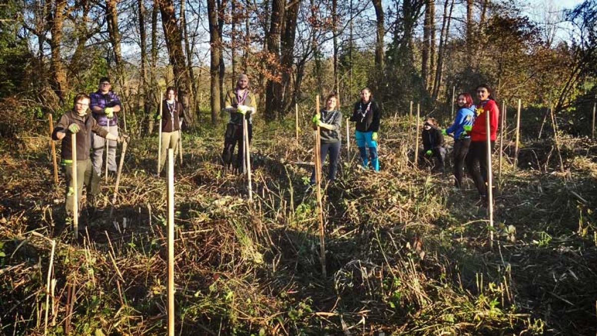 Matija Špacapan, pomočnik vodje poslovne enote Celje pri Slovenskih državnih gozdovih, je v Velenju skupaj s taborniki rodu Lilijski grič sodeloval pri saditvi novih dreves na območju med Škalskim in Velenjskim jezerom.