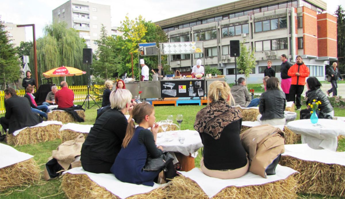 V kulinaričnem senzoričnem gledališču so nastopili trije nadobudni, domači kuharski mojstri – Velenjčanka Katja Černjak, Šoštanjčanka Tjaša Koren in Celjan Tilen Stropnik. Čeprav so gostje nekoliko dlje posedeli v pričakovanju okusov, so si čas krajšali z opazovanjem potez kuharskih mojstrov, ki so na prostem pripravljali specialitete.