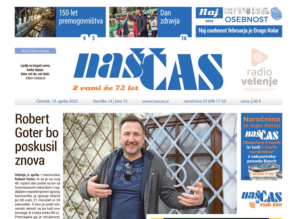Naš čas, če vam ga poštar ni dostavil v nabiralnik, lahko kupite v vseh trafikah, dobite pa ga tudi pri nas v uredništvu (03 898 17 50). V tokratni številki izpostavljamo zanimive in aktualne vsebine: