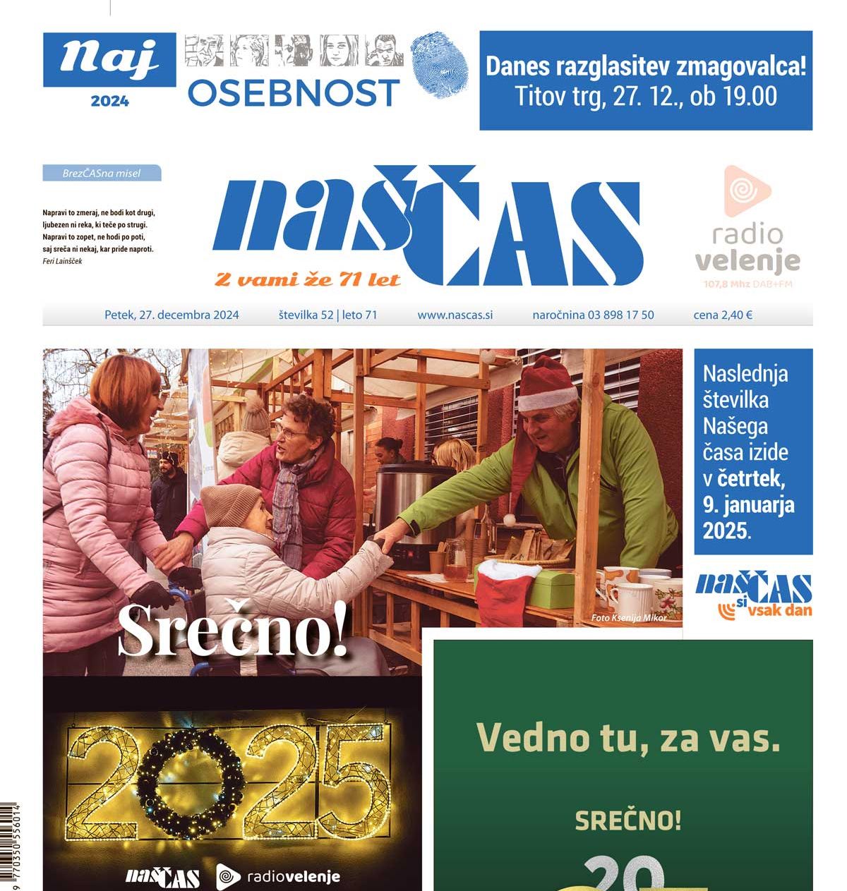 Naš čas, če vam ga poštar ni dostavil v nabiralnik, lahko kupite v vseh trafikah, dobite pa ga tudi pri nas v uredništvu (03 898 17 50).