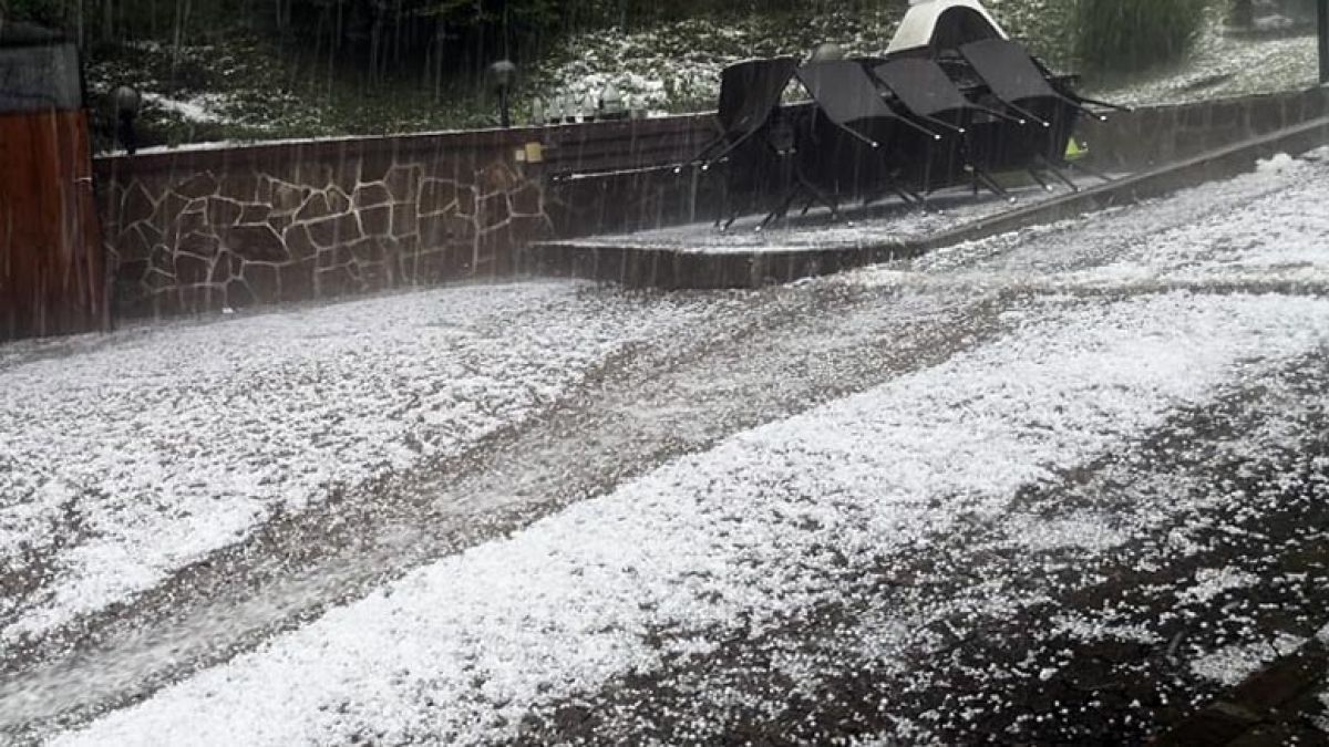 Tudi danes popoldan je bilo precej deževno, ponekod je močno padala toča, med drugim so je veliko dobili v Mozirju, saj so jo morali z ulic odstranjevati z lopatami.