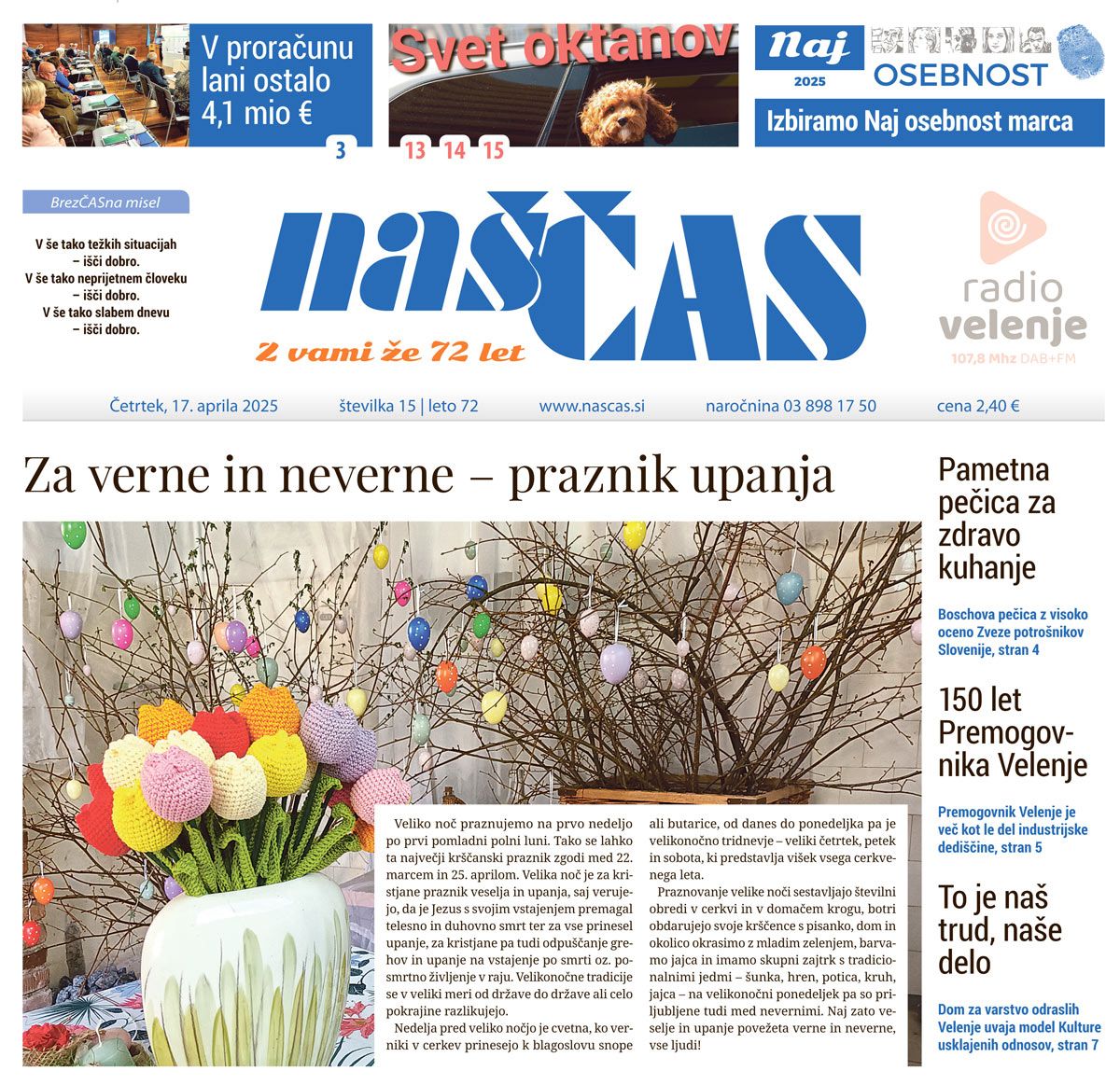 Naš čas, če vam ga poštar ni dostavil v nabiralnik, lahko kupite v vseh trafikah, dobite pa ga tudi pri nas v uredništvu (03 898 17 50). V tokratni številki izpostavljamo zanimive in aktualne vsebine:
