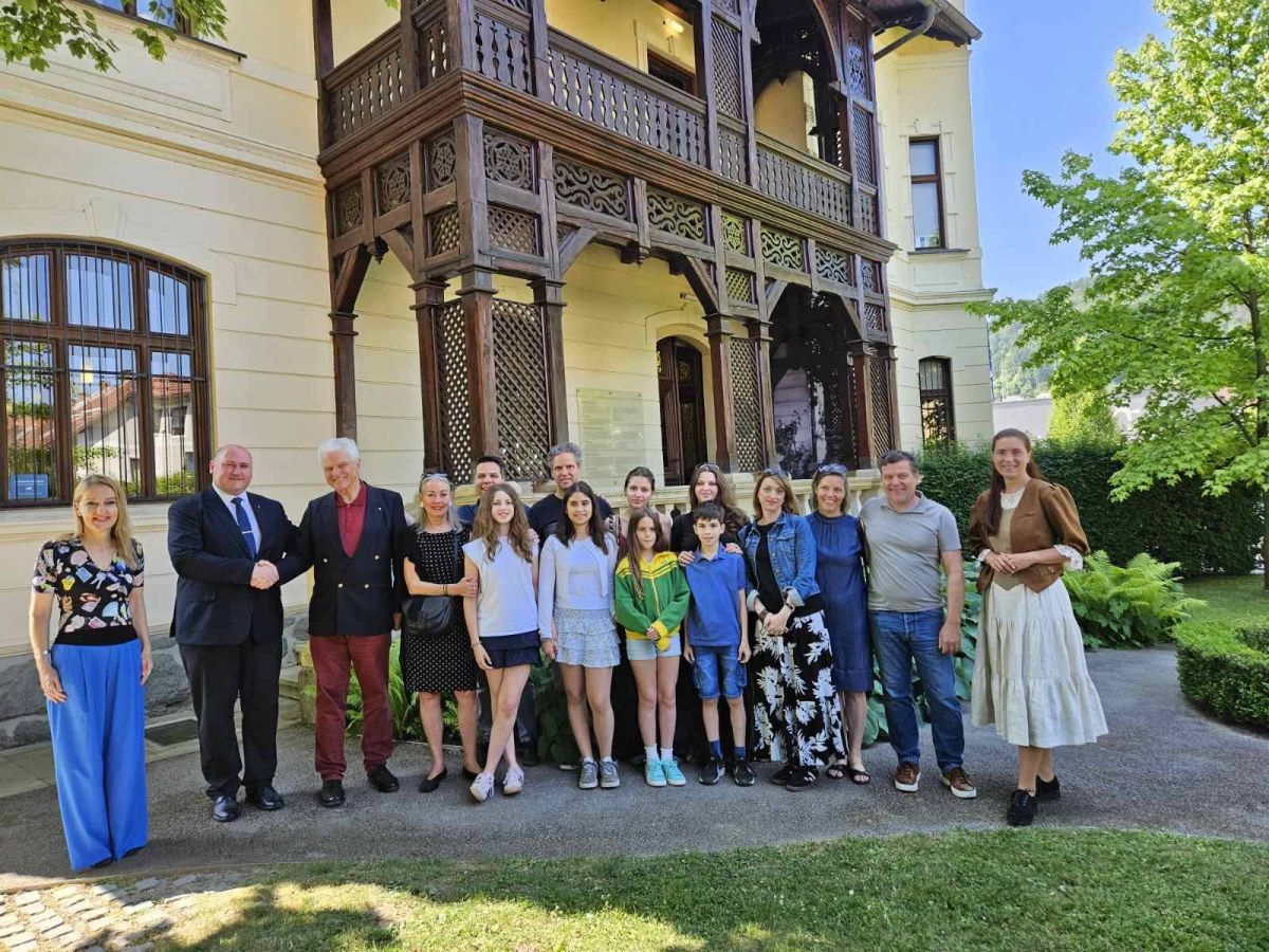 Šoštanj, 14. junija – Na obisku v Šoštanju so bili člani družine Woschnagg, in sicer dr. Gregor Woschnagg in njegovi trije otroci z družinami. Za doživetje so si izbrali petzvezdnični produkt Zavoda za turizem Šaleške doline Gosposko po Šoštanju – polet v usnjarno Evrope.