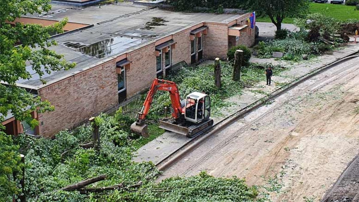 Velenje – Danes, ob sicer precejšnjem zgražanju mimoidočih občanov, padajo drevesa na Prešernovi cesti v Velenju.