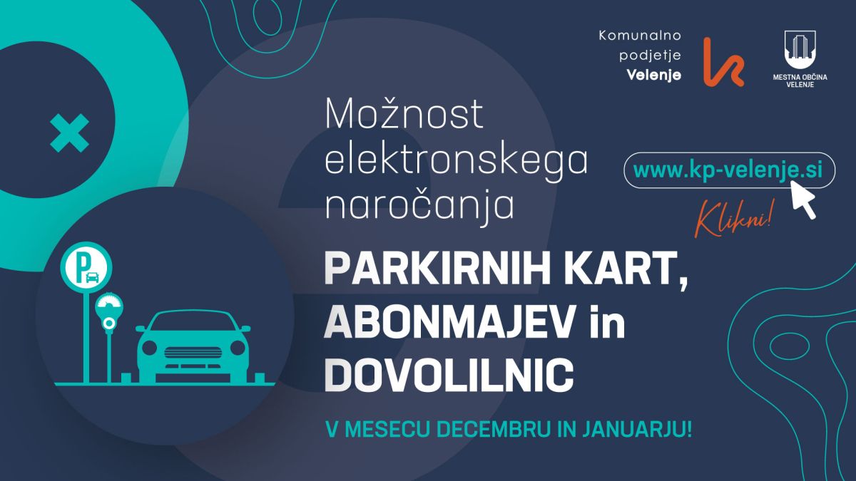Komunalno podjetje Velenje poziva uporabnike, da si uredijo parkirne abonmaje, dovolilnice in karte za leto 2025 preko spleta. Vlogo najdete na spletni strani podjetja v zavihku uporabniški center/e-naročanje Modre cone ali uporabniški center/vloge in obrazci/Modre cone. Pogoj za izvedbo e-naročila je, da je uporabnik prejemnik e-računa v PDF obliki. Naročeni abonmaji in dovolilnice bodo poslani na naslov, naveden na vlogi.