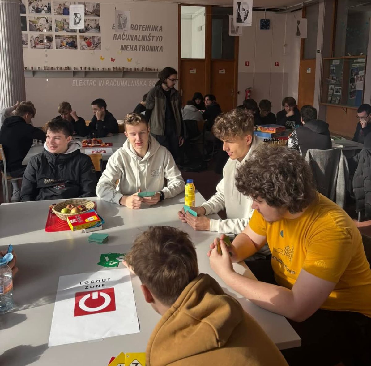 Svetovne dneve brez pametnega telefona so z dijaki nato aktivno izvedli dva dni zapored (6. in 7. februarja). V avli šole so postavili t. i. »log out zone«, kjer so pripravili družabne igre in spodbudne misli, ki so dijake vabile k pogovoru brez telefonov. En del avle so pustili odprt, da so lahko dijaki sami izbrali, ali bodo telefon izklopili ali ne – zanimivo je, da je ta prostor ostal manj obiskan in je večina z veseljem sprejela izziv ter poskusila nekaj novega.