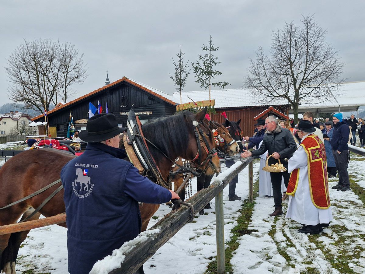 Šmartno ob Paki, 26. decembra – Ob godu sv. Štefana so se po državi zvrstili blagoslovi konj. Najmnožičnejši, tradicionalni zbor so priredili v Dolenji Stari vasi pri Šentjerneju, kjer se običajno zbere več kot 150 konjenikov. 28 let tradicijo blagoslova konj na Štefanovo negujejo tudi člani Konjerejskega društva Šmartno ob Paki. Vrsto let so dogodek v Martinovi vasi ob tamkajšnji železniški postaji z ubranim petjem obogatili člani domačega moškega pevskega zbora, letos je za to poskrbel glasbeni sestav Vesele babice z Zdravkom. Blagoslov plemenitih živali je opravil šmarški župnik Ivan Napret.