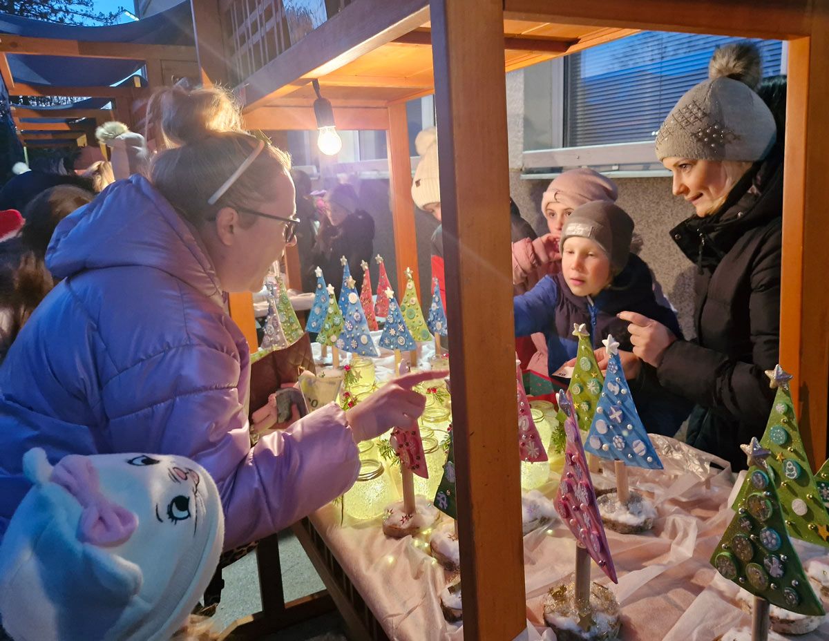 Šmartno ob Paki, 28. novembra – Učenci Osnovne šole bratov Letonja in otroci tamkajšnjega javnega vrtca Sonček so minuli petek pod mentorstvom svojih učiteljic, učiteljev in vzgojiteljic pripravili 22. Miklavžev sejem. Stojnice na ploščadi pred osnovno šolo so se šibile pod težo unikatnih izdelkov za novoletno jelko, za prostor pod njo, za na mizo ali kakšno drugo polico v sobah ‒ pravo zakladnico za prihajajoči praznični čas oziroma nekaj, kar bo v vsak dom prineslo toplino, svetlobo in kanček praznične čarobnosti. Na stojnicah so namreč zasijale hiške, bleščeče smrečice, čudoviti okraski, adventni venčki… Praznično dogajanje so popestrili še foto kotiček, poslikava obraza, letos prvič tudi Miklavževa kavarna, v kateri so pripravljali brezalkoholne koktajle in srečelov z bogatimi nagradami. Obiskovalce so razvajali omamni vonji in okusi peciva, pokusili so lahko sveže pripravljene palačinke in se ogreli s skodelico toplega čaja. Dogodek so s kratkim kulturnim programom obogatili učenci ter obisk Miklavža, ki so ga spremljali parkeljci. Tako kot vseh dosedanjih 21 let so tudi tokrat izkupiček sejma namenili šolskemu skladu Z roko v roki.