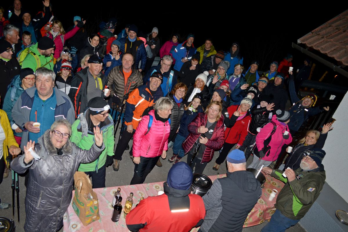 Praznični 2. januar je tudi letos povabil kar 71 pohodnikov, ki so se v prijazni večerni svetlobi in s pomočjo svetil podali od lipe samostojnosti v Topolšici, mimo hotela Vesna in Zimzelena v strmino Loma, mimo čudovitih domačij, posejanih ob poti.