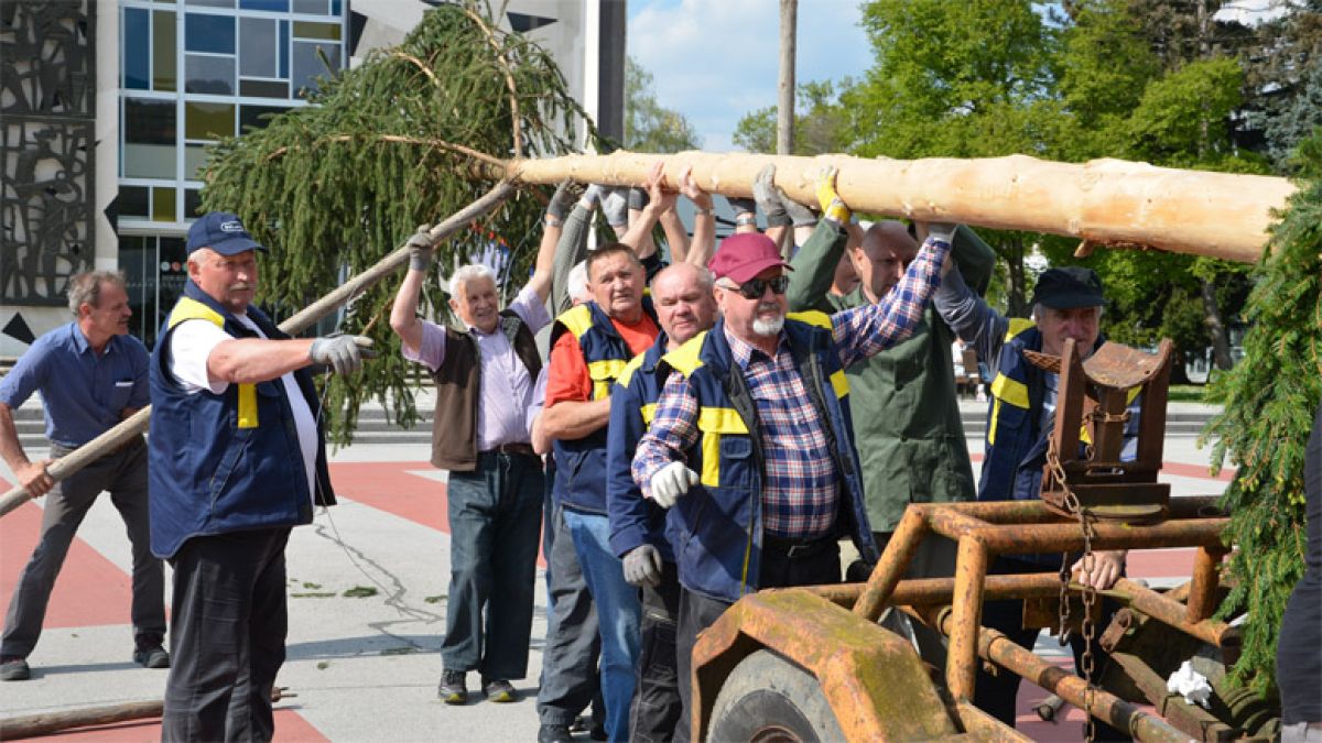 Velenje – Po tem, ko so prostovoljci v petek popoldne na Titovem trgu ročno postavili kar 22 metrov visok mlaj, ki so ga pred dvigom okrasili s krono iz smrečja in slovensko zastavo, so ga morali žal spustiti.