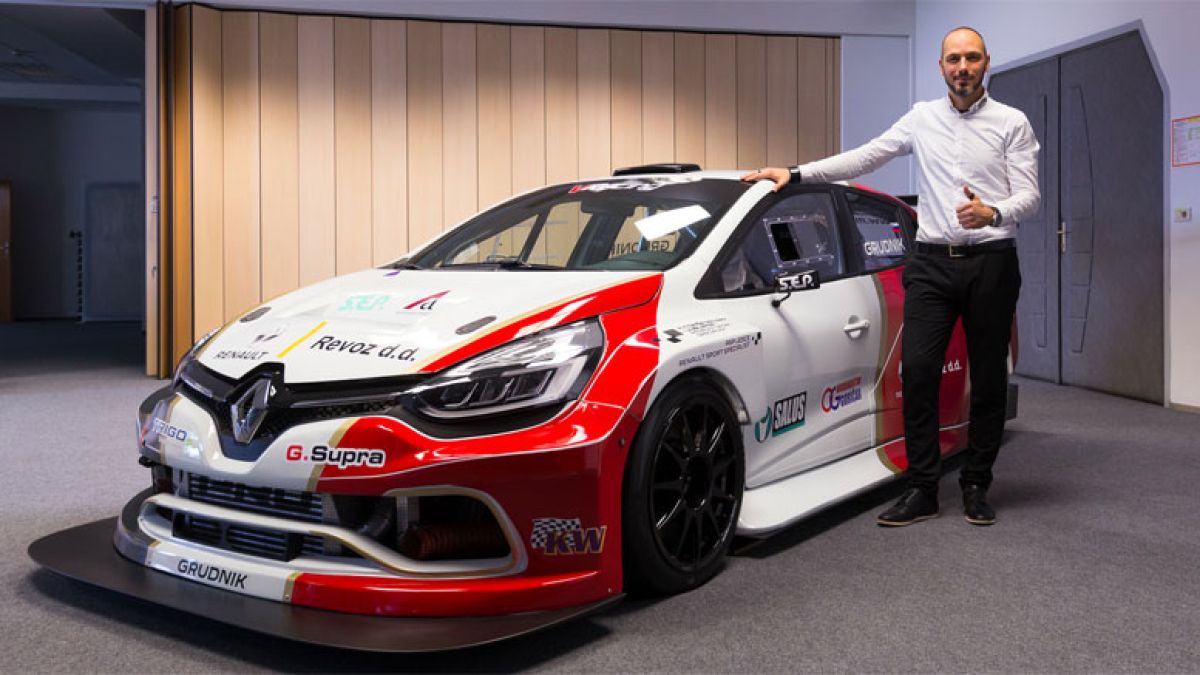 Matej Grudnik je v tovarni Revoz v Novem mestu premierno predstavil dirkalnik Renault Clio E1, novi dirkalnik izdelan izključno za gorske hitrostne dirke.