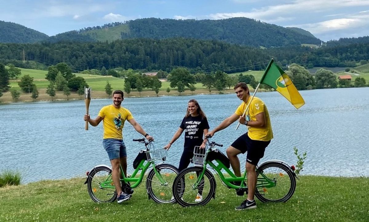 Bakla povezuje občanke in občane v občinah po Sloveniji ter širi vrednote olimpijskih iger. Danes popoldan so jo pozdravili tudi na Visti. Iz smeri velenjskega mestnega stadiona sta Slovensko baklo na Visto s kolesi iz velenjskega sistema Bicy pripeljala člana ekipe rokometnega kluba Gorenje Velenje, aktualnega državnega prvaka.